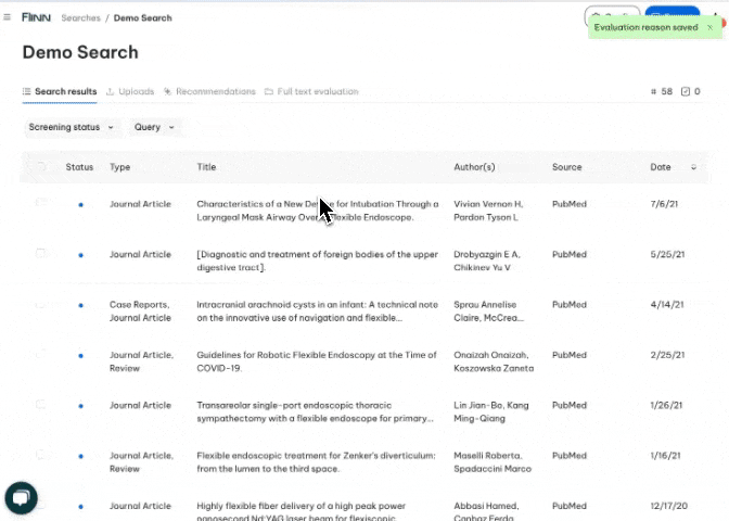 - ✅ Title Screening & Bulk Evaluation: Evaluate directly from the result list and apply bulk decisions to speed up screening.